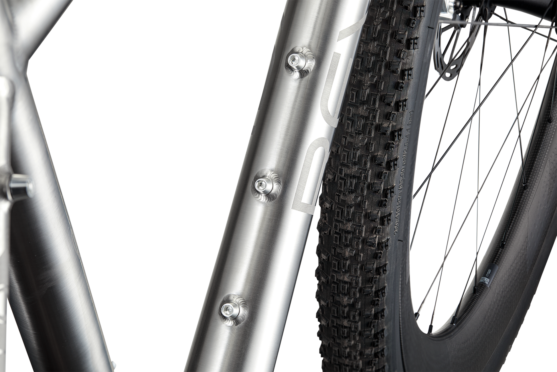 Bottle Bosses 4 sets total: 2 inside front triangle, 1 under downtube, 1 additional single boss under top tube for accessory mounting