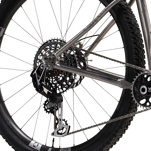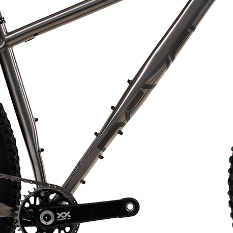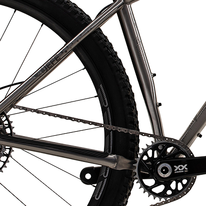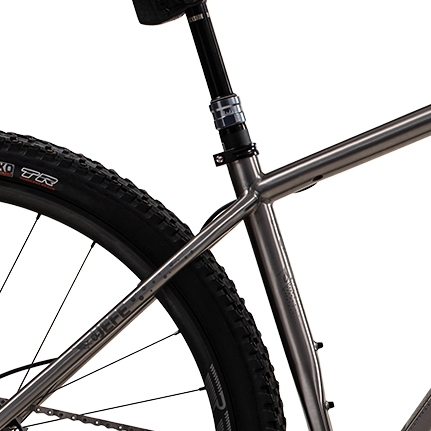 Confidently take the Jefe bikepacking, over technical singletrack, and to the start line of your next XC race. A straight top tube, room for 29×2.6” tires with ample mud clearance. Sliding dropouts with 420-435mm chain stay adjustability allows you to build this up just how you like it. Load it up for adventure or keep it lightweight and fast.